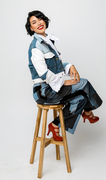 Second Stitch is a reimagined denim collection crafted from reclaimed jeans. Each patchwork piece is deconstructed and rebuilt by hand, celebrating individuality, zero-waste values, and bold, conscious design. No two are alike—because neither are you.